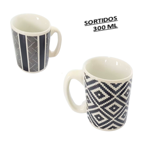 CANECA DE PORCELANA 300ML - PRETO E BRANCO - UT11-11