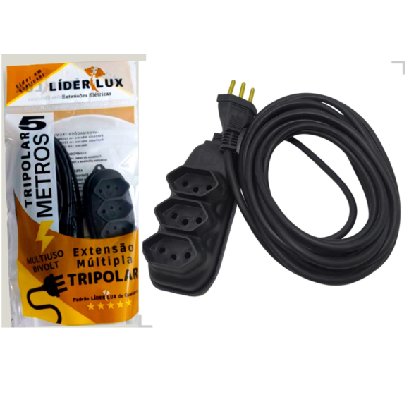 EXTENSÃO TRIPOLAR C/3 TOMADAS C/5M - 6598 - REF 507