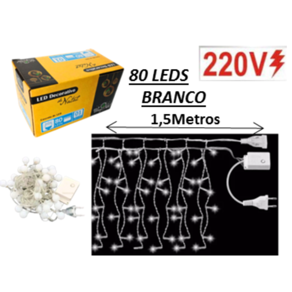 CASCATA BOLINHA BRANCA 80 LEDS 1,5M - NTM13080B220V