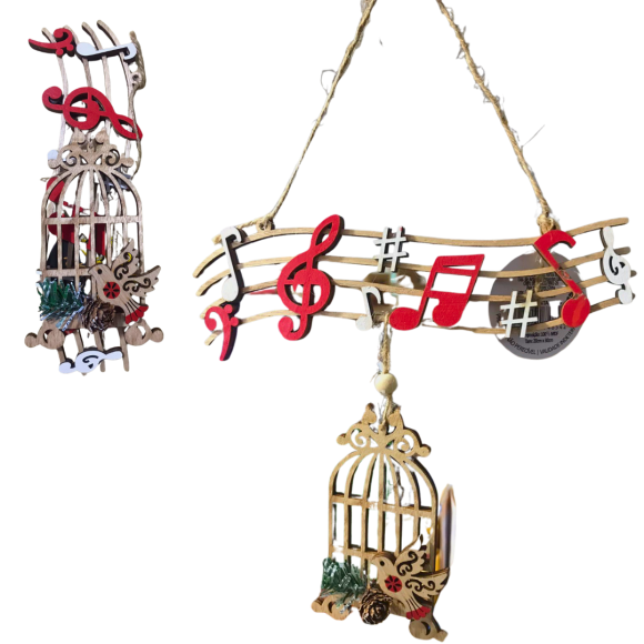NT - ENFEITE DE MADEIRA NOTAS MUSICAIS C/GAIOLA - NTA01076