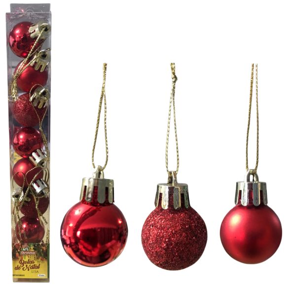 NT - BOLA DE NATAL VERMELHA 2,5CM TUBO C/8 UNID - ZC523