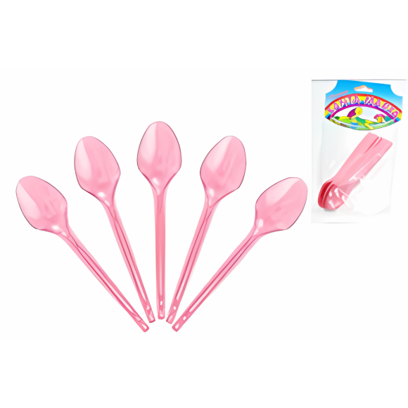 COLHER PLÁSTICO SOBREMESA ROSA C/12 UNID